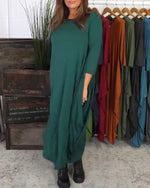 SPÉCIFICATIONS Style: Décontracté Matériel: Mélange de coton Type de la robe: Robe jambe droite Longueur de la robe: Maxi Forme du col: Col rond Type du dessin: Couleur pure Type de la manche: Manches régulières Longueur de la manche: Manches longues Détails: Froncé Type d'ajustement: Habituel Saison: Printemps,Automne,Hiver Occasion: Quotidie...
