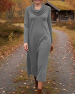 SPÉCIFICATIONS Style: Décontracté Matériel: Mélange de coton Type de la robe: Robe jambe droite Longueur de la robe: Maxi Forme du col: Col rond Type du dessin: Couleur pure Type de la manche: Manches régulières Longueur de la manche: Manches longues Détails: Froncé Type d'ajustement: Habituel Saison: Printemps,Automne,Hiver Occasion: Quotidie...