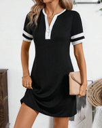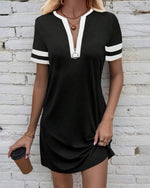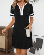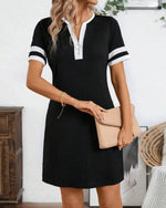 Robe Demi-Zip Colorblock Ajustée À Manches Courtes