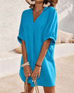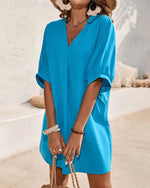 SPÉCIFICATIONS Style: Élégant,Faire la fête Matériel: Mélange de coton,Gaze Type de la robe: Robe jambe droite Longueur de la robe: Longueur du genou Forme du col: Col en V Type du dessin: Point Type de la manche: Manches bouffantes Longueur de la manche: Manches neuf points Détails: Couture de matériau,Poche Type d'ajustement: Habituel Saison...