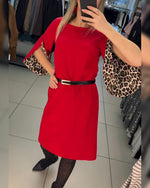Robe décontractée à col rond couleur unie