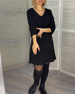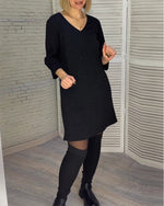 Robe élégante à col en V et manches trois-quarts