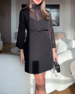 SPÉCIFICATIONS Style: Élégant,Faire la fête Matériel: Mélange de coton,Gaze Type de la robe: Robe jambe droite Longueur de la robe: Longueur du genou Forme du col: Col en V Type du dessin: Point Type de la manche: Manches bouffantes Longueur de la manche: Manches neuf points Détails: Couture de matériau,Poche Type d'ajustement: Habituel Saison...