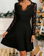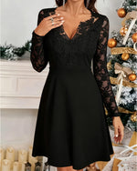 SPÉCIFICATIONS Style: Chic Matériel: Dentelle,Tricotage Type de la robe: A-Line Longueur de la robe: Au-dessus du genou Forme du col: Col rond Type de la manche: Manches bouffantes Longueur de la manche: Manches longues Détails: Couture de matériau,Creusé Type d'ajustement: Habituel Saison: Automne,Hiver Occasion: Quotidien Contenu du colis: 1...