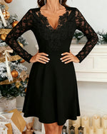 SPÉCIFICATIONS Style: Chic Matériel: Mélange de coton Type de la robe: A-Line Longueur de la robe: Au-dessus du genou Forme du col: Col rond Type du dessin: Couleur pure Type de la manche: Manches régulières Longueur de la manche: Manches longues Détails: Dentelle Type d'ajustement: Habituel Saison: Automne,Hiver Occasion: Quotidien Contenu du...