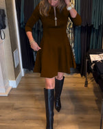 Robe Unie À Manches Longues Avec Détails Patchwork