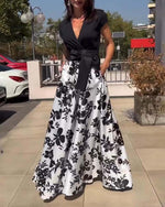 SPÉCIFICATIONS Style: Élégant,Faire la fête Matériel: Mélange de coton,Gaze Type de la robe: Robe jambe droite Longueur de la robe: Longueur du genou Forme du col: Col en V Type du dessin: Point Type de la manche: Manches bouffantes Longueur de la manche: Manches neuf points Détails: Couture de matériau,Poche Type d'ajustement: Habituel Saison...