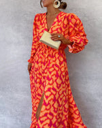 SPÉCIFICATIONS Style: Désirable Matériel: Mélange de coton Type de la robe: A-Line Longueur de la robe: Maxi Forme du col: Col en V Type du dessin: Impression Type de la manche: Manches bouffantes Longueur de la manche: Manches longues Détails: Lacet,Fente Type d'ajustement: Habituel Saison: Printemps,Automne Occasion: Quotidien Contenu du col...