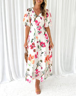 SPÉCIFICATIONS Style: Désirable Matériel: Mélange de coton Type de la robe: A-Line Longueur de la robe: Maxi Forme du col: Col en V Type du dessin: Impression Type de la manche: Manches bouffantes Longueur de la manche: Manches longues Détails: Lacet,Fente Type d'ajustement: Habituel Saison: Printemps,Automne Occasion: Quotidien Contenu du col...
