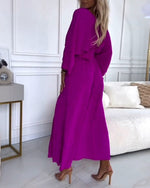 Robe élégante à manches longues fendue à col en V de couleur unie