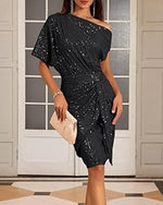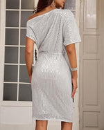 Robe élégante à paillettes avec col en V et épaules dénudées