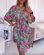 SPÉCIFICATIONS Style: Élégant,Faire la fête Matériel: Mélange de coton,Gaze Type de la robe: Robe jambe droite Longueur de la robe: Longueur du genou Forme du col: Col en V Type du dessin: Point Type de la manche: Manches bouffantes Longueur de la manche: Manches neuf points Détails: Couture de matériau,Poche Type d'ajustement: Habituel Saison...