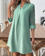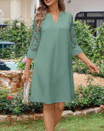 SPÉCIFICATIONS Style: Décontracté Matériel: Mélange de coton,Dentelle Type de la robe: A-Line Longueur de la robe: Au-dessus du genou Forme du col: Col en V Type du dessin: Couleur pure Type de la manche: Manches régulières Longueur de la manche: Manches longues Type d'ajustement: Habituel Saison: Automne,Hiver Occasion: Quotidien Contenu du c...