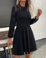 SPÉCIFICATIONS Style: Chic Matériel: Dentelle,Tricotage Type de la robe: A-Line Longueur de la robe: Au-dessus du genou Forme du col: Col rond Type de la manche: Manches bouffantes Longueur de la manche: Manches longues Détails: Couture de matériau,Creusé Type d'ajustement: Habituel Saison: Automne,Hiver Occasion: Quotidien Contenu du colis: 1...
