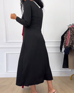 Robe Unie À Manches Longues Avec Détails Patchwork