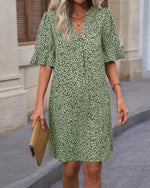 SPÉCIFICATIONS Style: Élégant,Faire la fête Matériel: Mélange de coton,Gaze Type de la robe: Robe jambe droite Longueur de la robe: Longueur du genou Forme du col: Col en V Type du dessin: Point Type de la manche: Manches bouffantes Longueur de la manche: Manches neuf points Détails: Couture de matériau,Poche Type d'ajustement: Habituel Saison...