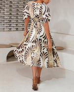 SPÉCIFICATIONS Style: Décontracté Matériel: Mélange de coton Type de la robe: A-Line Longueur de la robe: Midi Forme du col: Col à revers Type du dessin: Impression Type de la manche: Manches régulières Longueur de la manche: Manches neuf points Type d'ajustement: Habituel Saison: Printemps,Été Occasion: Quotidien Contenu du colis: 1 x Robe TA...