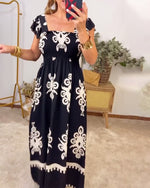 SPÉCIFICATIONS Style: Décontracté Matériel: Mélange de coton Type de la robe: Robe jambe droite Longueur de la robe: Maxi Forme du col: Col en V Type du dessin: Impression Longueur de la manche: Manches 3/4 Détails: Poche,Froncé Type d'ajustement: Habituel Saison: Printemps,Automne,Hiver Occasion: Quotidien Contenu du colis: 1 x Robe TABLEAU D...