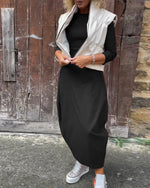 Robe Unie À Manches Longues Avec Détails Patchwork