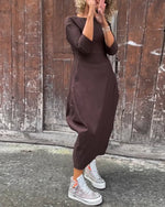 SPÉCIFICATIONS Style: Décontracté Matériel: Mélange de coton Type de la robe: Robe jambe droite Longueur de la robe: Maxi Forme du col: Col rond Type du dessin: Couleur pure Type de la manche: Manches régulières Longueur de la manche: Manches longues Détails: Froncé Type d'ajustement: Habituel Saison: Printemps,Automne,Hiver Occasion: Quotidie...