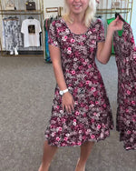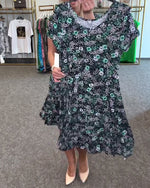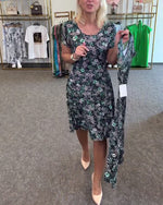 SPÉCIFICATIONS Style: Élégant Matériel: Mousseline,Fibre polyester Type de la robe: A-Line Longueur de la robe: Midi Forme du col: Col en V Type du dessin: Impression Type de la manche: Manches régulières Longueur de la manche: Manches courtes Détails: Couture de matériau, Lacet Type d'ajustement: Habituel Saison: Printemps, Été, Automne Occ...