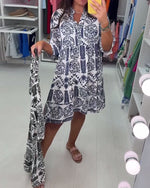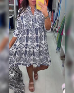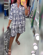 SPÉCIFICATIONS Style: Décontracté Matériel: Mélange de coton Type de la robe: A-Line Longueur de la robe: Midi Forme du col: Col à revers Type du dessin: Impression Type de la manche: Manches régulières Longueur de la manche: Manches neuf points Type d'ajustement: Habituel Saison: Printemps,Été Occasion: Quotidien Contenu du colis: 1 x Robe TA...