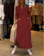 SPÉCIFICATIONS Style: Décontracté Matériel: Mélange de coton Type de la robe: Robe jambe droite Longueur de la robe: Maxi Forme du col: Col rond Type du dessin: Couleur pure Type de la manche: Manches régulières Longueur de la manche: Manches longues Détails: Froncé Type d'ajustement: Habituel Saison: Printemps,Automne,Hiver Occasion: Quotidie...