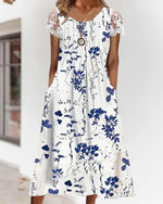 SPÉCIFICATIONS Style: Élégant,Faire la fête Matériel: Mélange de coton,Gaze Type de la robe: Robe jambe droite Longueur de la robe: Longueur du genou Forme du col: Col en V Type du dessin: Point Type de la manche: Manches bouffantes Longueur de la manche: Manches neuf points Détails: Couture de matériau,Poche Type d'ajustement: Habituel Saison...
