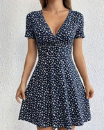SPÉCIFICATIONS Style: Élégant,Faire la fête Matériel: Mélange de coton,Gaze Type de la robe: Robe jambe droite Longueur de la robe: Longueur du genou Forme du col: Col en V Type du dessin: Point Type de la manche: Manches bouffantes Longueur de la manche: Manches neuf points Détails: Couture de matériau,Poche Type d'ajustement: Habituel Saison...