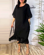 Robe Élégante À Manches Ballon Et Détails Patchwork