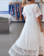 SPÉCIFICATIONS Style: Décontracté Matériel: Mélange de coton Type de la robe: Robe jambe droite Longueur de la robe: Midi Forme du col: Col rond Type du dessin: Couleur pure Type de la manche: Manches à gigot Longueur de la manche: Manches longues Détails: Dentelle Type d'ajustement: Ample Saison: Automne,Hiver Occasion: Quotidien,Faire la fêt...