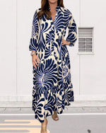 SPÉCIFICATIONS Style: Désirable Matériel: Mélange de coton Type de la robe: A-Line Longueur de la robe: Maxi Forme du col: Col en V Type du dessin: Impression Type de la manche: Manches bouffantes Longueur de la manche: Manches longues Détails: Lacet,Fente Type d'ajustement: Habituel Saison: Printemps,Automne Occasion: Quotidien Contenu du col...