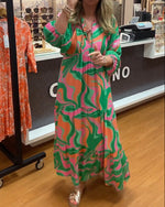 SPÉCIFICATIONS Style: Désirable Matériel: Mélange de coton Type de la robe: A-Line Longueur de la robe: Maxi Forme du col: Col en V Type du dessin: Impression Type de la manche: Manches bouffantes Longueur de la manche: Manches longues Détails: Lacet,Fente Type d'ajustement: Habituel Saison: Printemps,Automne Occasion: Quotidien Contenu du col...
