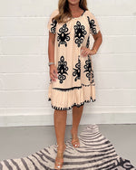 SPÉCIFICATIONS Style: Décontracté Matériel: Mélange de coton Type de la robe: Robe jambe droite Longueur de la robe: Maxi Forme du col: Col en V Type du dessin: Impression Longueur de la manche: Manches 3/4 Détails: Poche,Froncé Type d'ajustement: Habituel Saison: Printemps,Automne,Hiver Occasion: Quotidien Contenu du colis: 1 x Robe TABLEAU D...