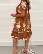 SPÉCIFICATIONS Style: Décontracté Matériel: Mélange de coton Type de la robe: A-Line Longueur de la robe: Midi Forme du col: Col à revers Type du dessin: Impression Type de la manche: Manches régulières Longueur de la manche: Manches neuf points Type d'ajustement: Habituel Saison: Printemps,Été Occasion: Quotidien Contenu du colis: 1 x Robe TA...