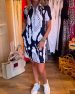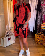 SPÉCIFICATIONS Style: Élégant Matériel: Mousseline,Fibre polyester Type de la robe: A-Line Longueur de la robe: Midi Forme du col: Col en V Type du dessin: Impression Type de la manche: Manches régulières Longueur de la manche: Manches courtes Détails: Couture de matériau, Lacet Type d'ajustement: Habituel Saison: Printemps, Été, Automne Occ...