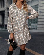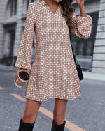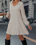 Robe Manches Longues À Patchwork Et Pied-De-Poule