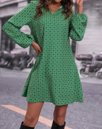 SPÉCIFICATIONS Style: Décontracté Matériel: Mélange de coton Type de la robe: A-Line Longueur de la robe: Au-dessus du genou Forme du col: Col en V Type du dessin: Paillettes,Couleur pure Type de la manche: Manches à volants Longueur de la manche: Manches longues Détails: Volants Type d'ajustement: Ample Saison: Automne,Hiver Occasion: Quotidi...