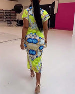 Robe imprimée à manches courtes et col rond