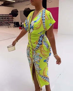 Robe imprimée à taille fendue en V profond