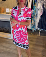 SPÉCIFICATIONS Style: Décontracté Matériel: Mélange de coton Type de la robe: A-Line Longueur de la robe: Midi Forme du col: Col à revers Type du dessin: Impression Type de la manche: Manches régulières Longueur de la manche: Manches neuf points Type d'ajustement: Habituel Saison: Printemps,Été Occasion: Quotidien Contenu du colis: 1 x Robe TA...