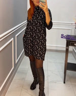 SPÉCIFICATIONS Style: Chic Matériel: Mélange de coton,Paillettes Type de la robe: Robe jambe droite Longueur de la robe: Au-dessus du genou Forme du col: Col rond Type du dessin: Paillettes Type de la manche: Manches régulières Longueur de la manche: Manches longues Détails: Couture de matériau Type d'ajustement: Habituel Saison: Automne,Hiver...