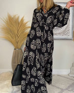 SPÉCIFICATIONS Style: Décontracté Matériel: Mélange de coton Type de la robe: Robe jambe droite Longueur de la robe: Maxi Forme du col: Col en V Type du dessin: Impression Longueur de la manche: Manches 3/4 Détails: Poche,Froncé Type d'ajustement: Habituel Saison: Printemps,Automne,Hiver Occasion: Quotidien Contenu du colis: 1 x Robe TABLEAU D...