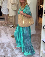 Robe longue boutonnée imprimée à col en V