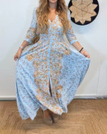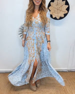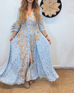 SPÉCIFICATIONS Style: Désirable Matériel: Mélange de coton Type de la robe: A-Line Longueur de la robe: Maxi Forme du col: Col en V Type du dessin: Impression Type de la manche: Manches bouffantes Longueur de la manche: Manches longues Détails: Lacet,Fente Type d'ajustement: Habituel Saison: Printemps,Automne Occasion: Quotidien Contenu du col...