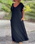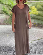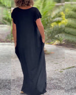 Robe longue de couleur unie avec poche et manche courte