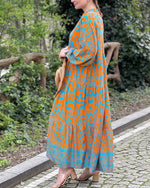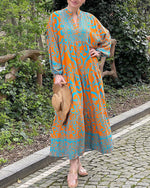 SPÉCIFICATIONS Style: Décontracté Matériel: Mélange de coton Type de la robe: Robe jambe droite Longueur de la robe: Maxi Forme du col: Col en V Type du dessin: Impression Longueur de la manche: Manches 3/4 Détails: Poche,Froncé Type d'ajustement: Habituel Saison: Printemps,Automne,Hiver Occasion: Quotidien Contenu du colis: 1 x Robe TABLEAU D...