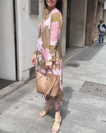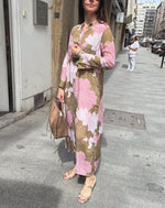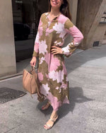 Robe longue décontractée fendue avec imprimé floral et manches longues