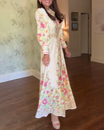 SPÉCIFICATIONS Style: Désirable Matériel: Mélange de coton Type de la robe: A-Line Longueur de la robe: Maxi Forme du col: Col en V Type du dessin: Impression Type de la manche: Manches bouffantes Longueur de la manche: Manches longues Détails: Lacet,Fente Type d'ajustement: Habituel Saison: Printemps,Automne Occasion: Quotidien Contenu du col...