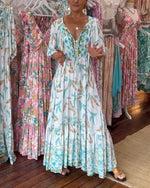 SPÉCIFICATIONS Style: Désirable Matériel: Mélange de coton Type de la robe: A-Line Longueur de la robe: Maxi Forme du col: Col en V Type du dessin: Impression Type de la manche: Manches bouffantes Longueur de la manche: Manches longues Détails: Lacet,Fente Type d'ajustement: Habituel Saison: Printemps,Automne Occasion: Quotidien Contenu du col...